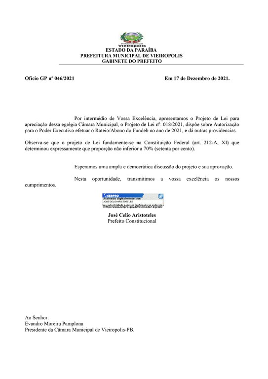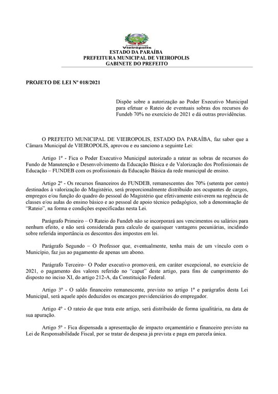 Câmara de vereadores da cidade de Vieirópolis realiza sessão extraordinária sábado dia 18